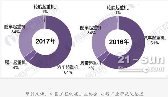 圖表2:2016-2017年中國起重機(jī)銷量結(jié)構(gòu)對比圖(單位:%)